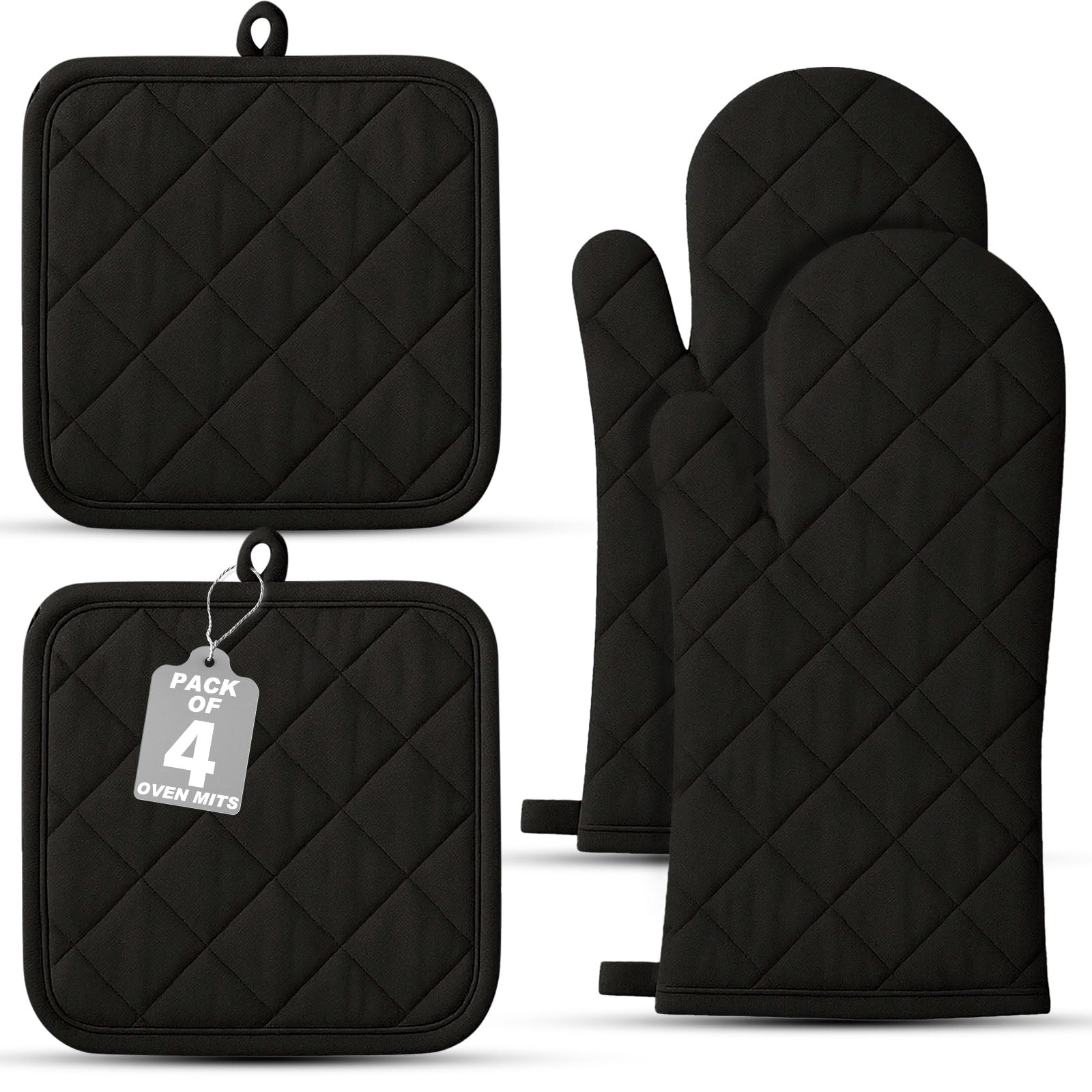 Oven Mitts and Pot Holders 4 pcs Set,ANUNU Extra Thicken Long Kitchen Cotton Oven Glove for Cooking(black)